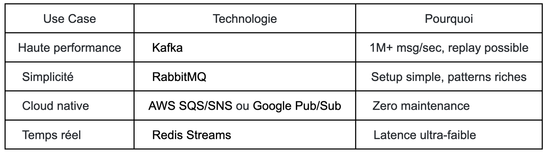 Exemple concret : Quand vous uploadez une vidéo sur YouTube, vous recevez immédiatement une confirmation. Le transcodage en différentes qualités (360p, 720p, 1080p, 4K) se fait ensuite de manière asynchrone, parfois pendant des heures.